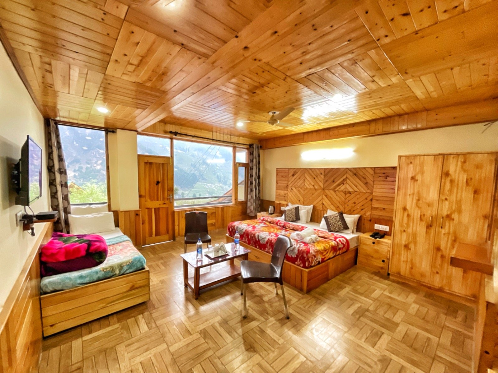 Our Premium Rooms are a perfect balance of elegance and comfort, designed for guests who value space, style, and tranquility. With large windows offering breathtaking views of the Manali mountains, these rooms provide a peaceful environment for relaxation, work, or family bonding — making your stay memorable and refreshing.